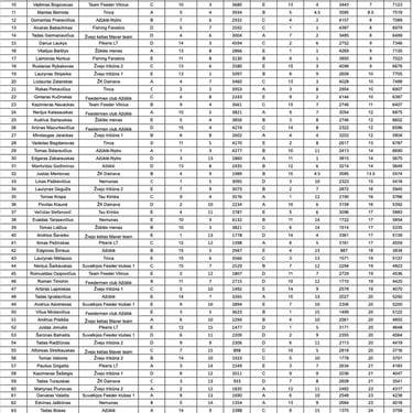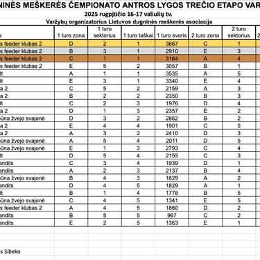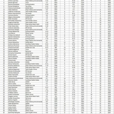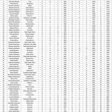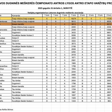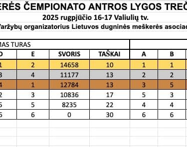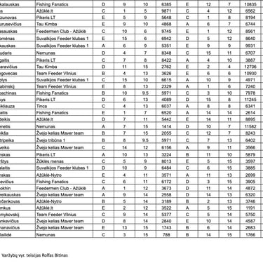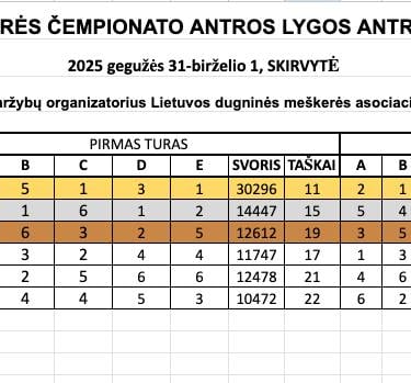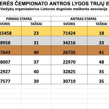 Lietuvos Dugninės Meškerės Čempionato 2 Lygos, 2025m. Galutiniai rezultatai
