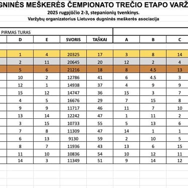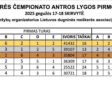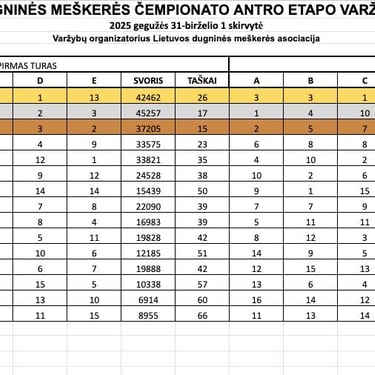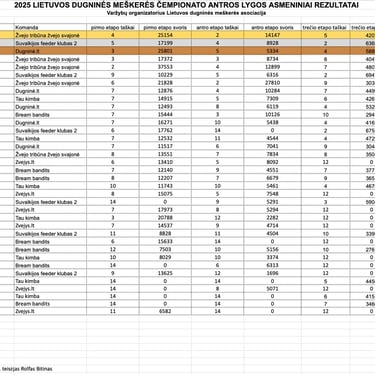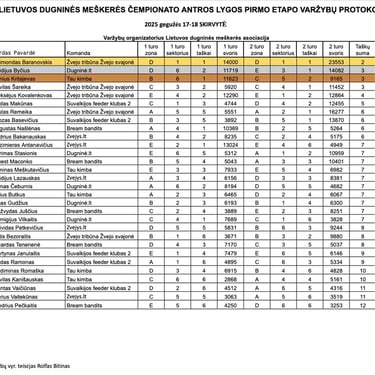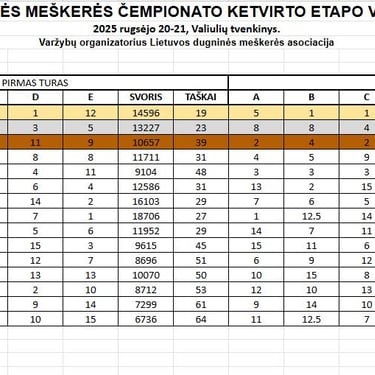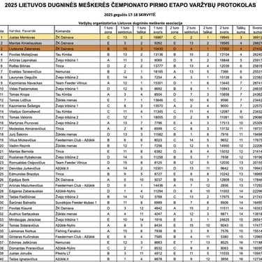 Lietuvos Dugninės Meškerės Čempionato 1 Lygos, 2025m. Galutiniai rezultatai
