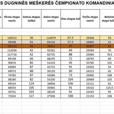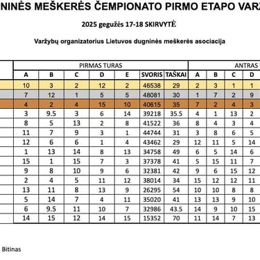 Lietuvos Dugninės Meškerės Čempionato 1 Lygos, 1 etapo Skirvytės upės rezultatai